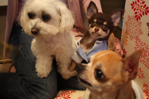 她拿出她的單眼相機來拍狗寶貝們..