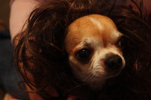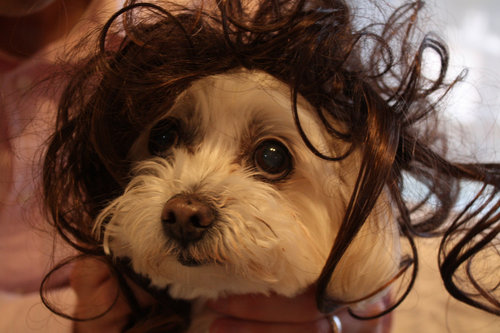 被橘子阿姨強迫戴上假髮...
