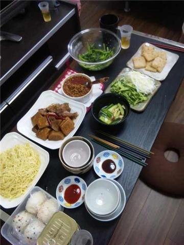 一桌好料~~~還有我特地帶回來的甜辣醬喔!!蘿蔔糕+甜辣醬~還真是絕配!