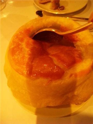 弟3道是鯛魚松茸海鮮焗湯~~~海鮮清湯超好喝!!加上酥皮真是絕配ㄚ