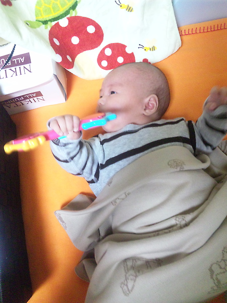 目前我還再訓練RYUDD吸手手..不過他只會吃他自己的拳頭..還無法精準的掌握到大拇指的位置..