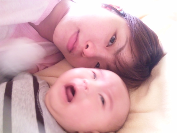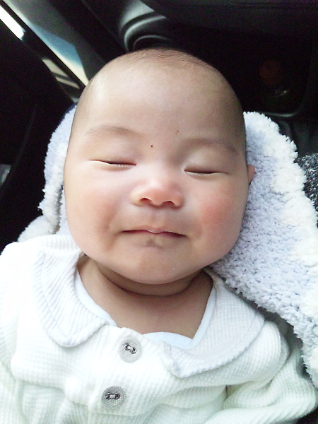滿2個月的當天早上一醒來...就對老娘來個開懷一笑..只可惜來不及拍下來..